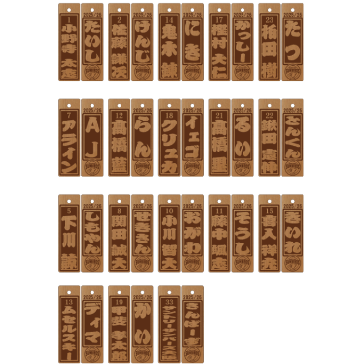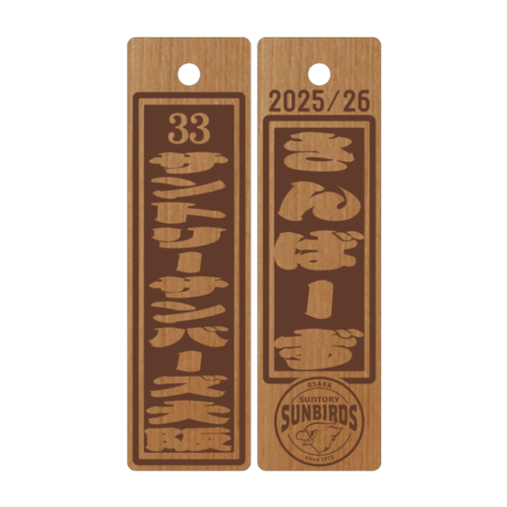 さくらの木に選手名やチームロゴが刻印されたストラップです。